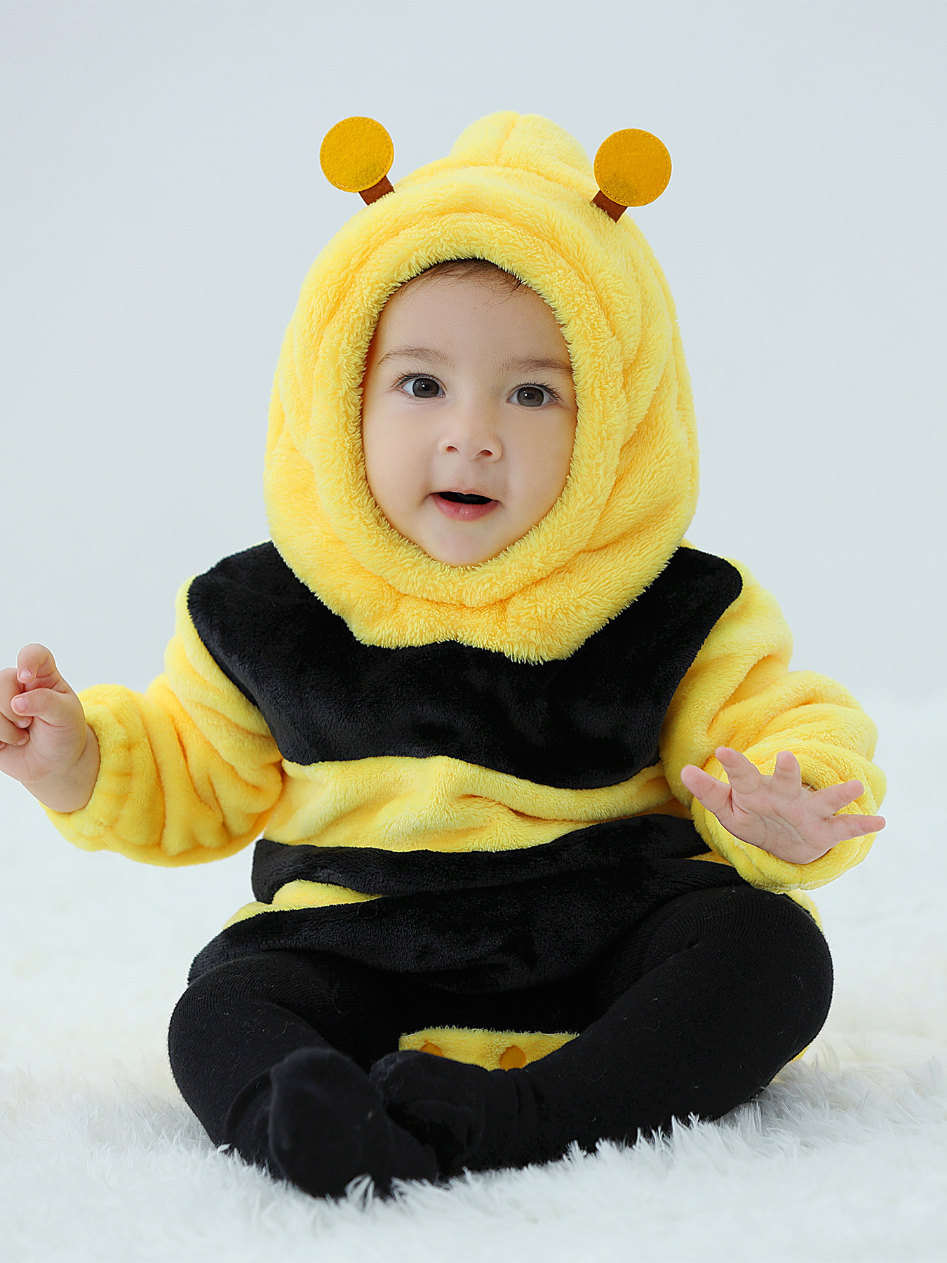 Baby Flannel Comfortable Bee Shape Jumpsuit