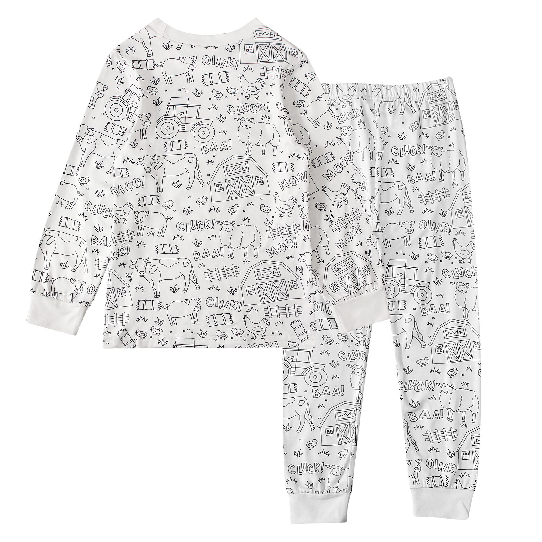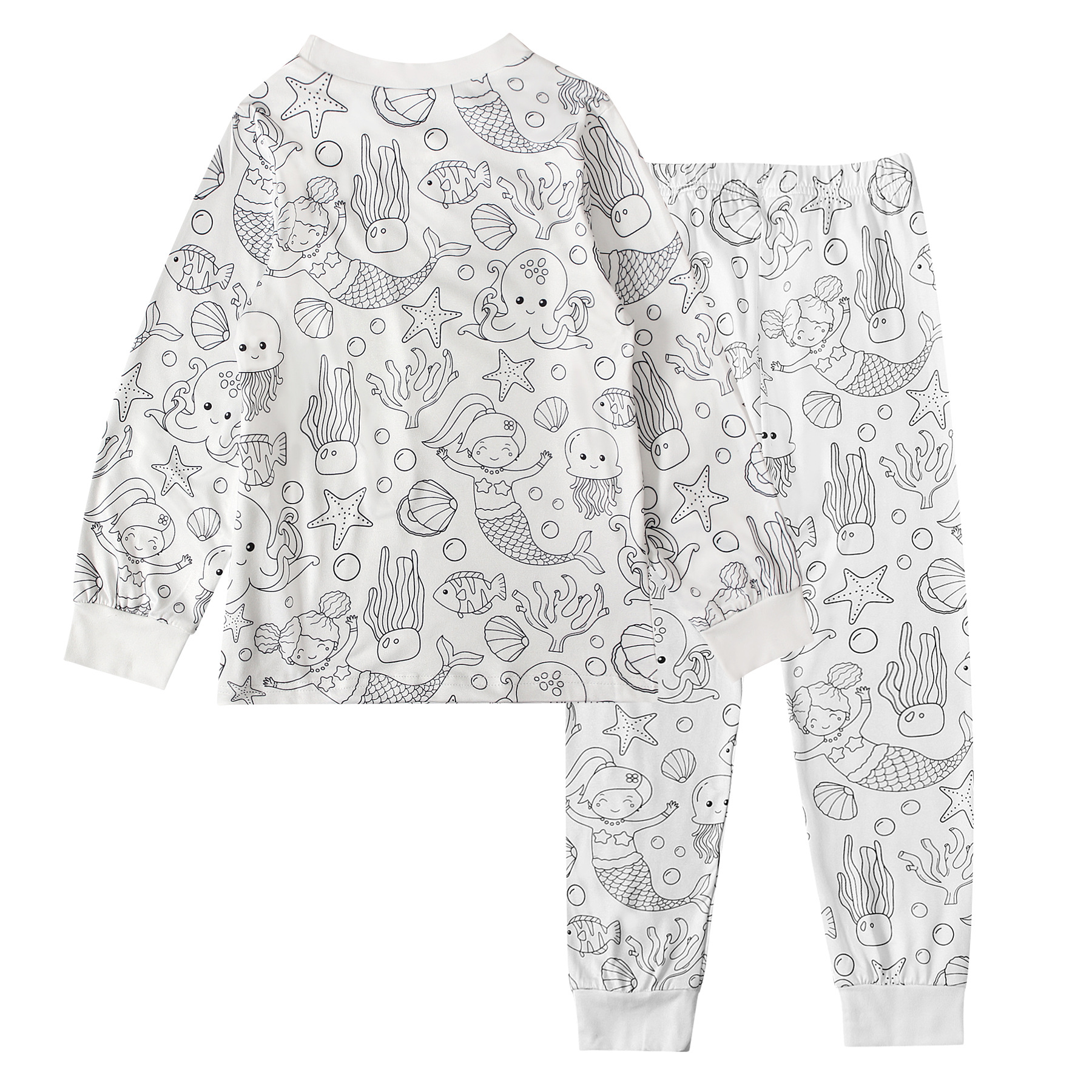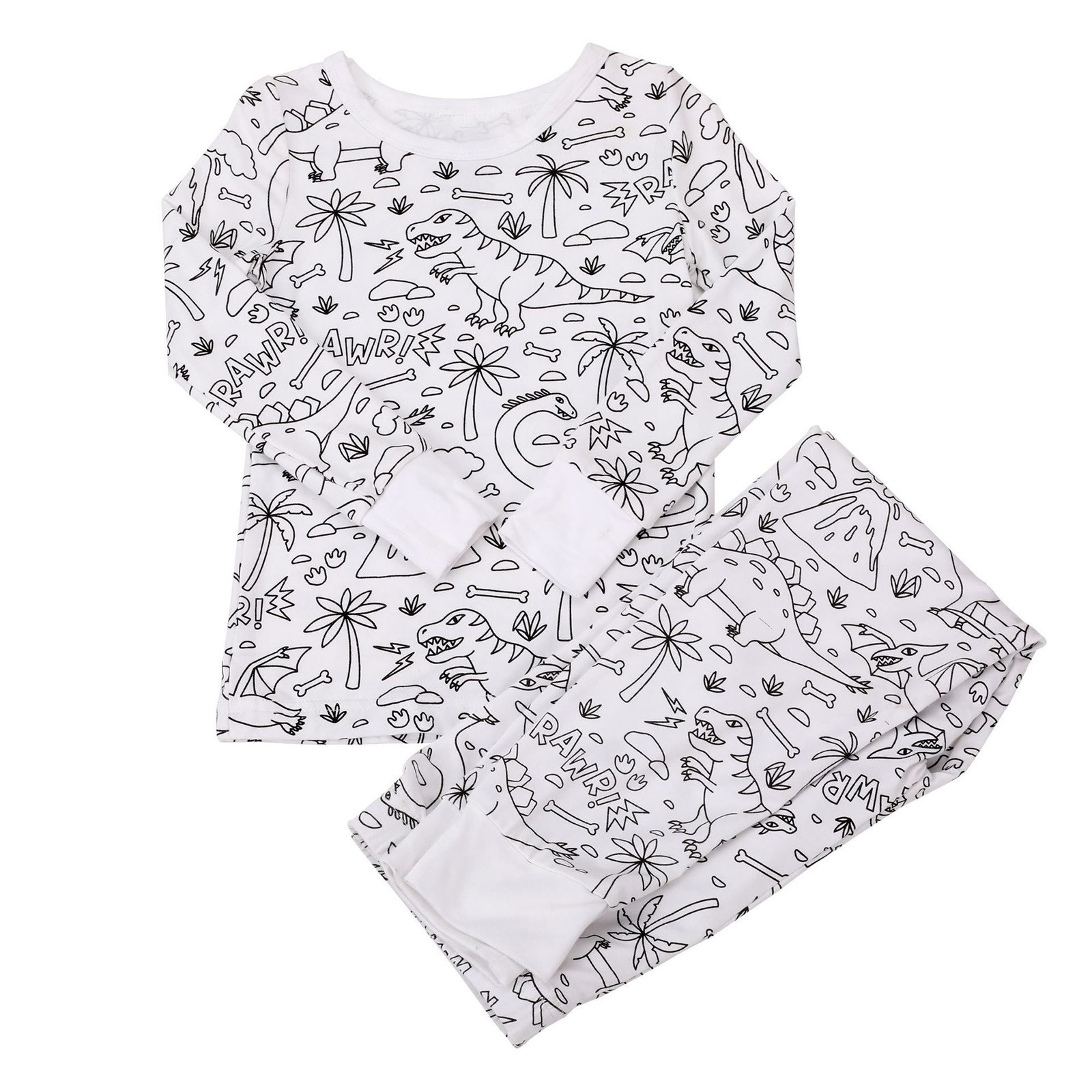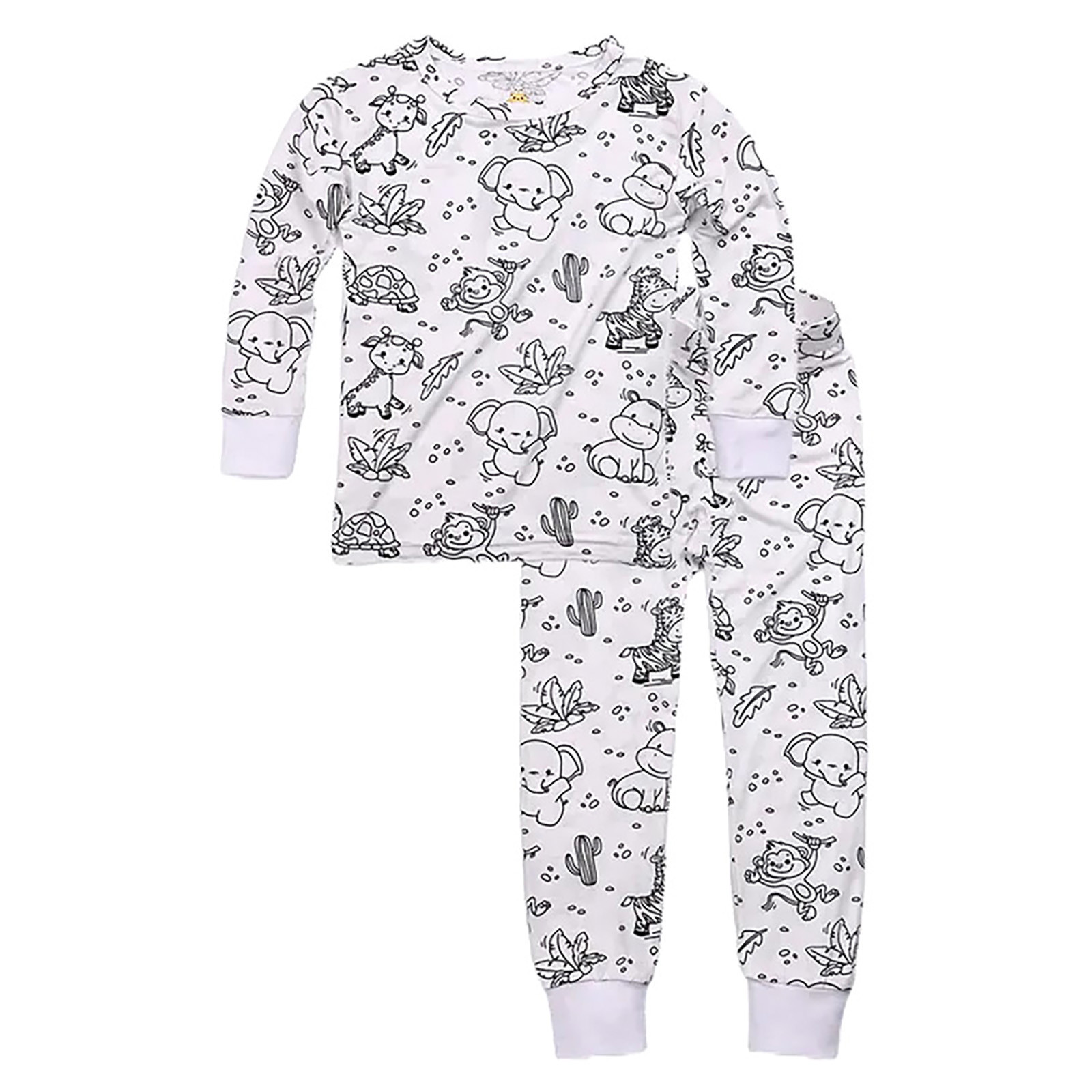 Black And White Cartoon Cartoon Pattern Long-sleeved T-shirt And Trousers Two-piece Home Wear Children's Suit