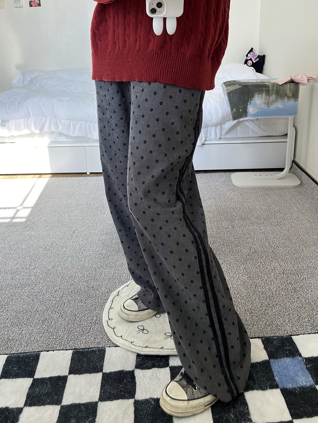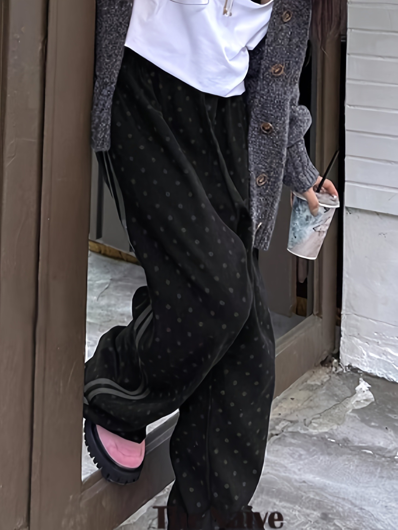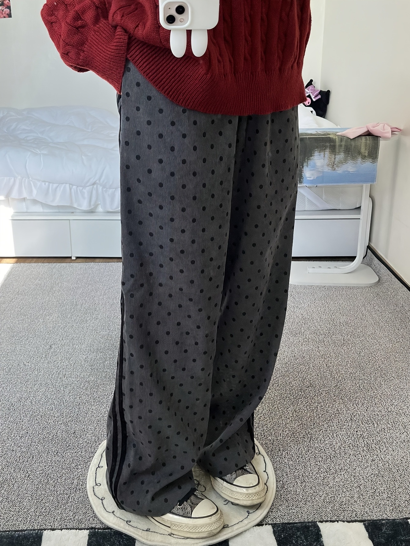 Thin Outer Wear Polka Dot Wide Leg Pants Drape All-matching Drawstring