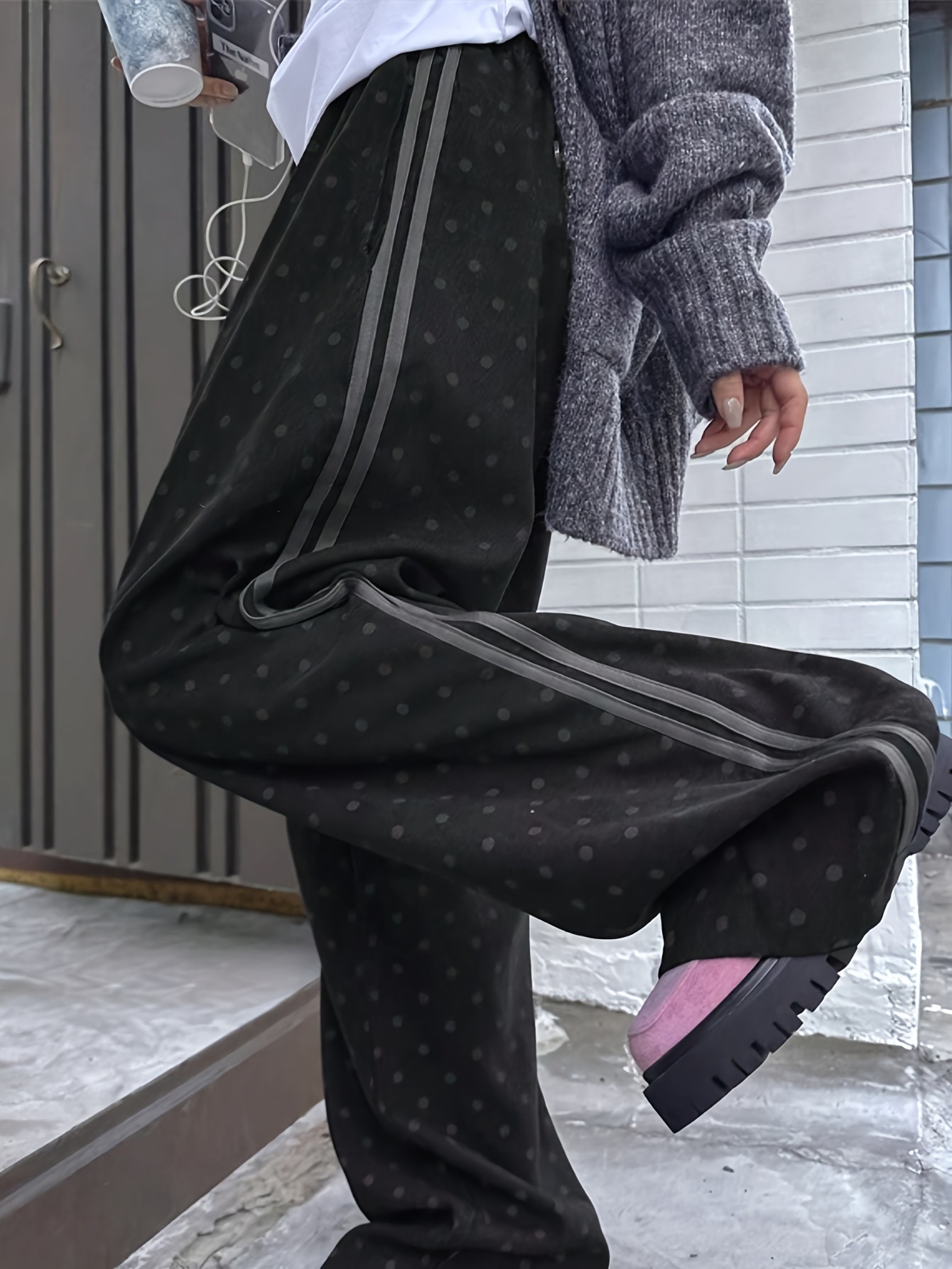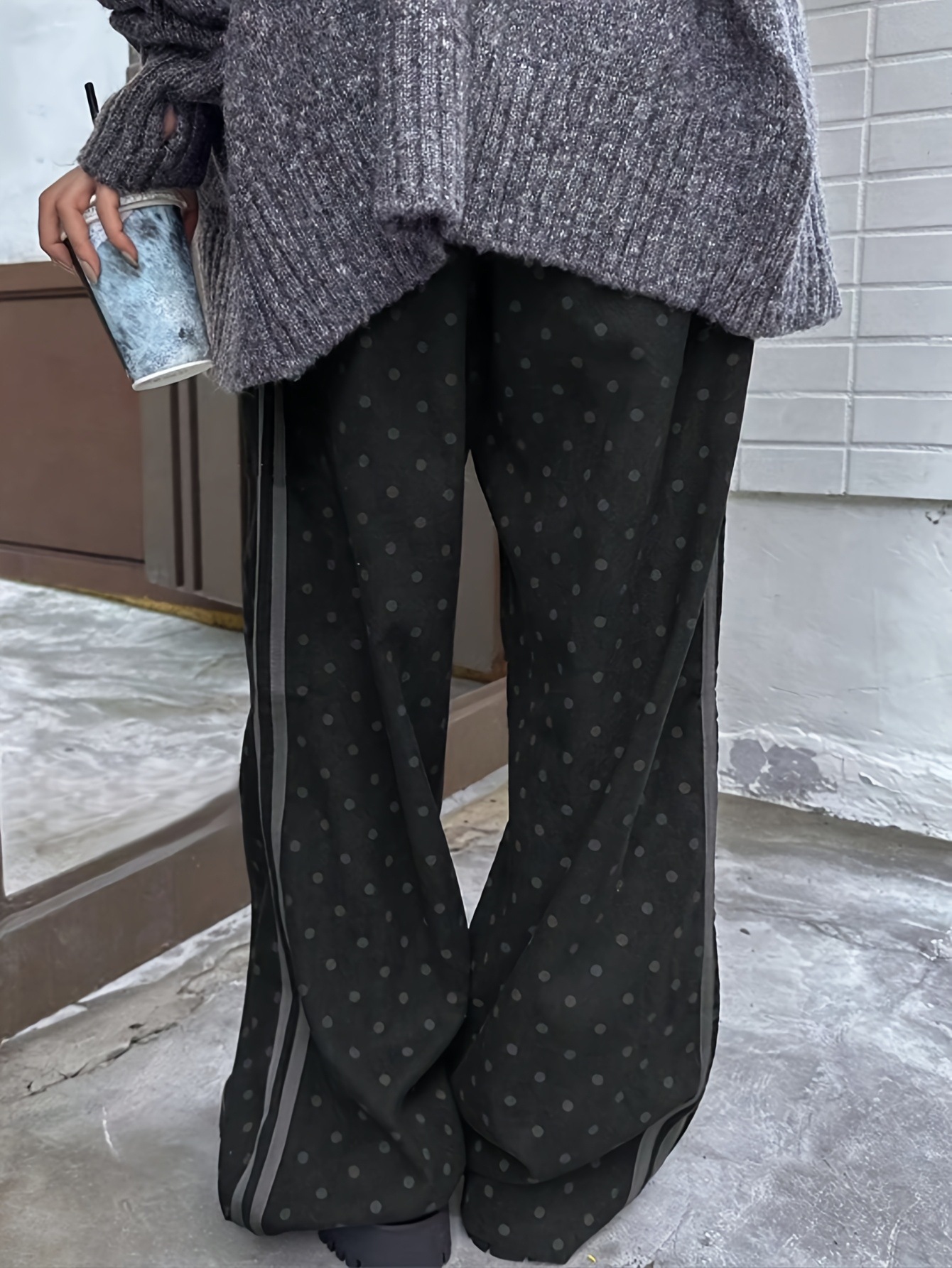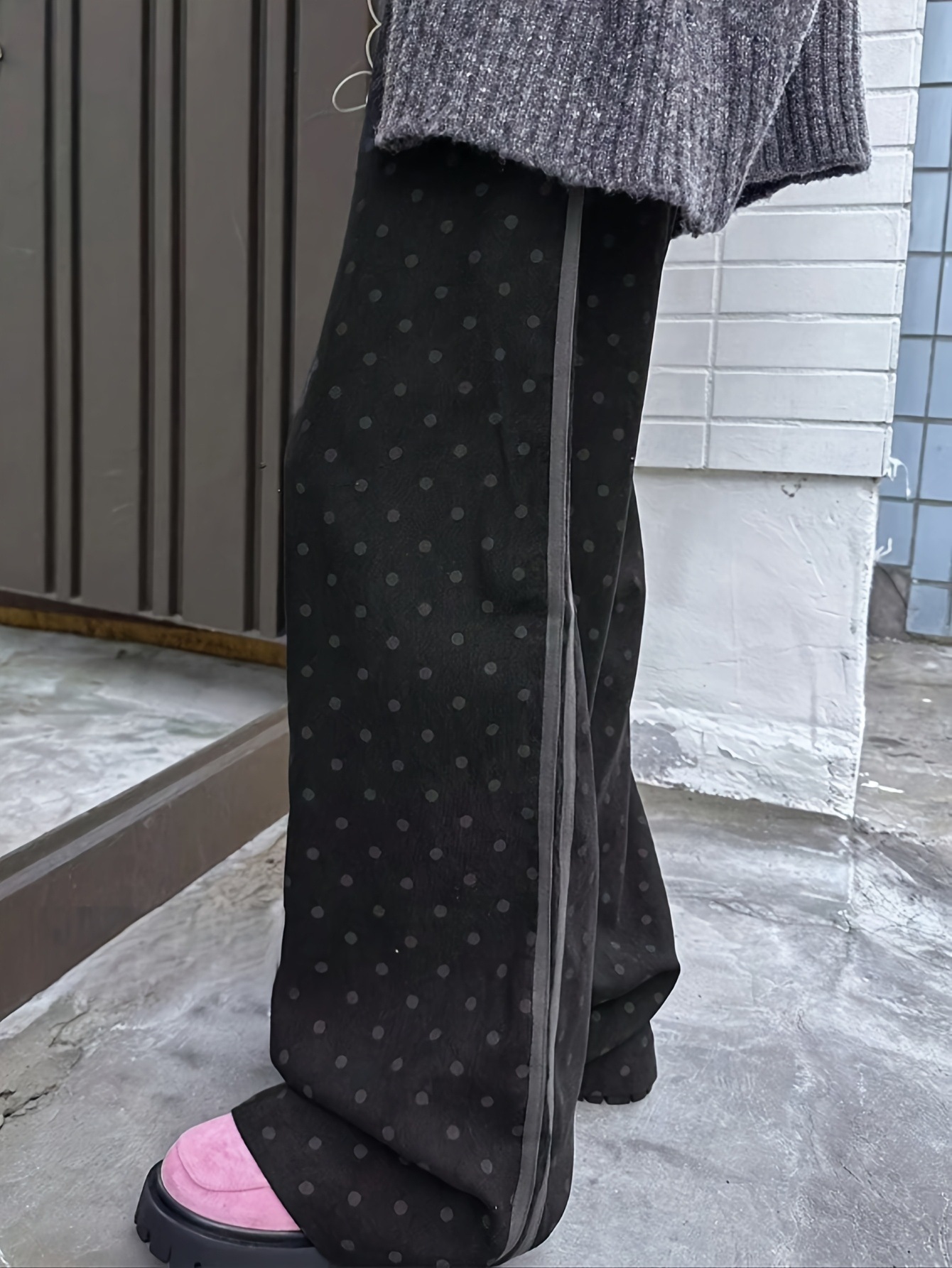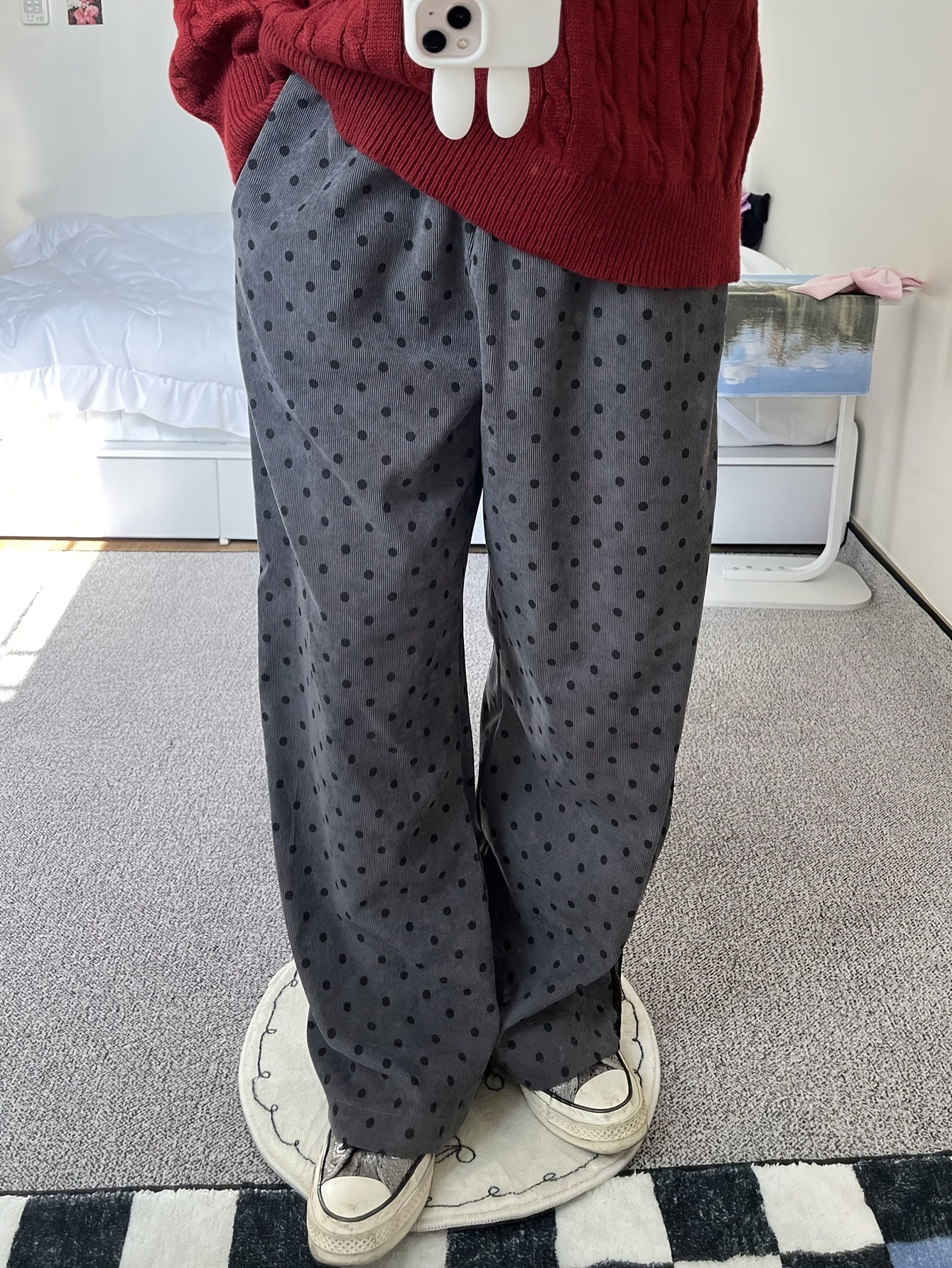 Thin Outer Wear Polka Dot Wide Leg Pants Drape All-matching Drawstring